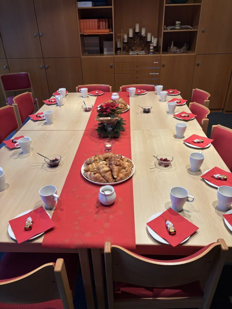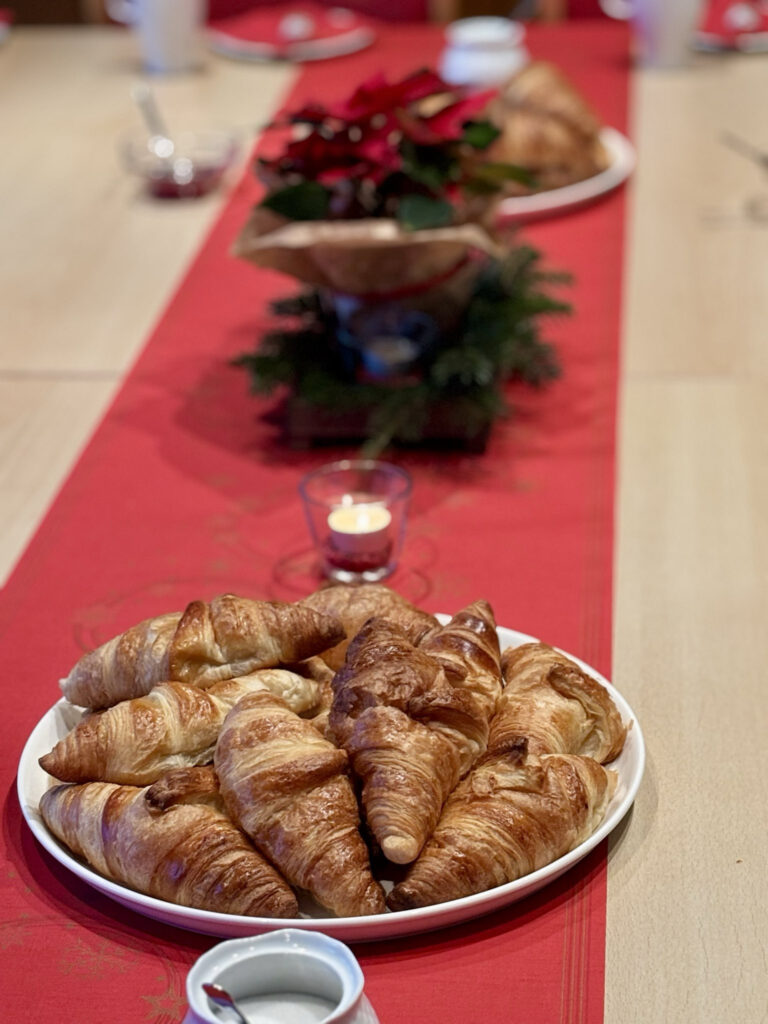 Auf dem Tisch stehen Kaffee und Tee, warme Croissants, Marmeladen und eine Nikolaus-Überraschung. Ein kleines französisches Frühstück. Ganz ohne Anmeldung.